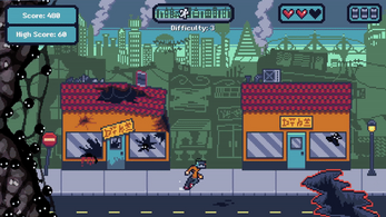 In a side-scrolling city, the player will be pursued by a wave of Neurashade, the unknown volatile virus consuming all in its path. The player must navigate the city’s obstacles by jumping and dodging. Advanced movements like the ground pound and slide, alongside the multiple powerups you'll encounter will help the player survive. Can you make it to the end?